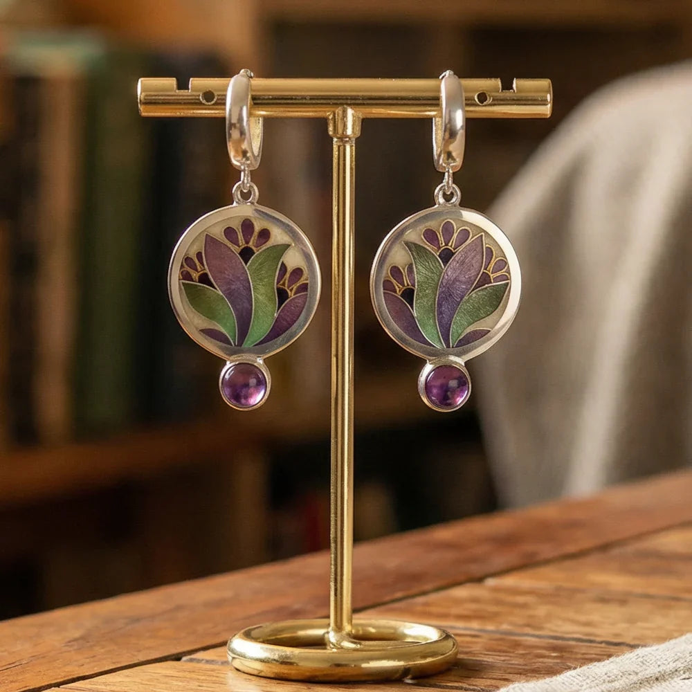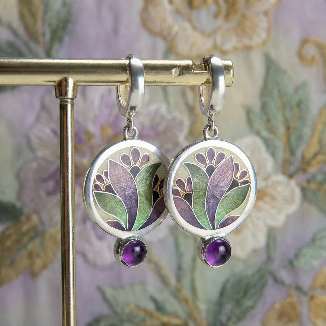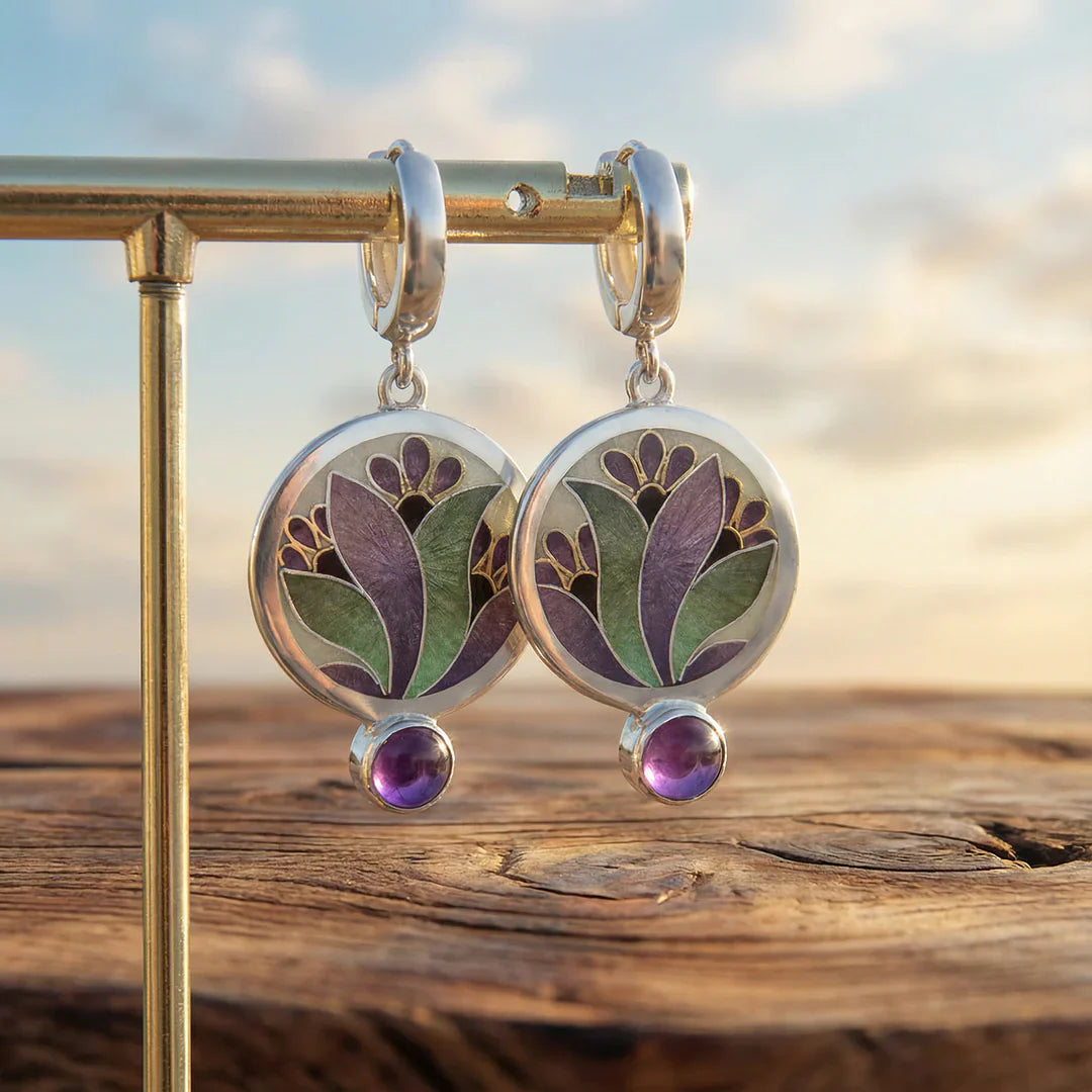 Náušnice krystaly fialovymi boho stříbra