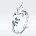 Prsten zirkony kolibrik zelenymi stříbře
